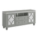 The Avril 70"� TV Stand is a glamourous addition to your entertainment space. Accented with mirror plates, two cabinet doors perfectly complement drawers adorned with posh crystal knobs and constructed with skillful dovetailing and ball bearing glides. Cable holes are conveniently integrated to simplify installing electronics and reduce clutter caused by cords, while stylized bun feet offer a stable foundation. A smooth and sheeny silver finish is accentuated by an aesthetic glitter trim adorning the top perimeter. Designed for those seeking to add a touch of luxury to their entertainment area, the Avril 70"� TV Stand is the clear choice. Features: • Mirror Accents Convey Glam Style • Made of Durable Engineered Wood • Cable Holes Help Organize Wires • Drawers with Skillful Dovetailing • Smooth Ball Bearing Drawer Glides • Aesthetic Crystal Knobs & Glitter Trim • Bun Feet Offer Reliable Support • Anti-Tip Kit Enhances Safety • 70"W x 18"D x 34"H • Due to Lighting, Product Color Mary Slightly Vary from Images Dimensions: Depth: 18.0" x Width: 70.0" x Height: 34.0" Weight: 176.0 lbs.