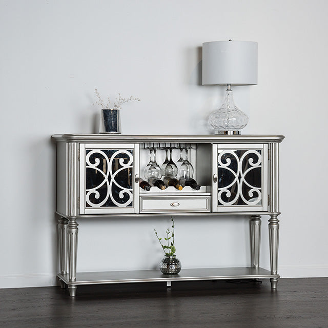 Table + 6 Chairs, Glam, Fabric, Solid Wood, Wood Veneer, Others, Upholstered Seats, Turned Fluted Legs, Silverware Tray Storage & Wine Rack on Server