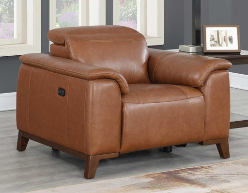 Bergamo Collection by Steve Silver Mocha finish Constructed of top-grain leather with vinyl sides and backs Power articulating headrest Power doub...