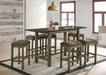 GUMBORO Counter Ht. Stool (2/CTN), 17 1/2"W X 12 3/4"D X 26"H (SEAT HT: 26", SEAT DP: 12 3/4"), 44lbs. In terms of table design, this collection is as simple as it gets. These matching stools are standard affair, with the lighter tone chestnut finish emphasizing their farmhouse roots. But what it lacks in visual appeal, it makes up for in comfort: the soft linen-like fabric chairs are contoured like a saddle to cradle anyone who sits on them.