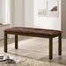 Sometimes, sophistication comes in simple packages with outstanding details. The bench seat cushion is upholstered in fabric-like vinyl, while the frame is finished in a lovely, warm walnut color.
