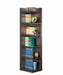 Display your book collection with style and pride. This bookcase features six convenient shelves to show off your personal library. Ideal for smaller spaces, it tucks neatly into a corner to free up precious square footage. A handsome cappuccino finish gives it a classically chic appearance. Crafted from durable MDF, particle board, and engineered veneer, this bookcase is strong, sturdy, and stunning.