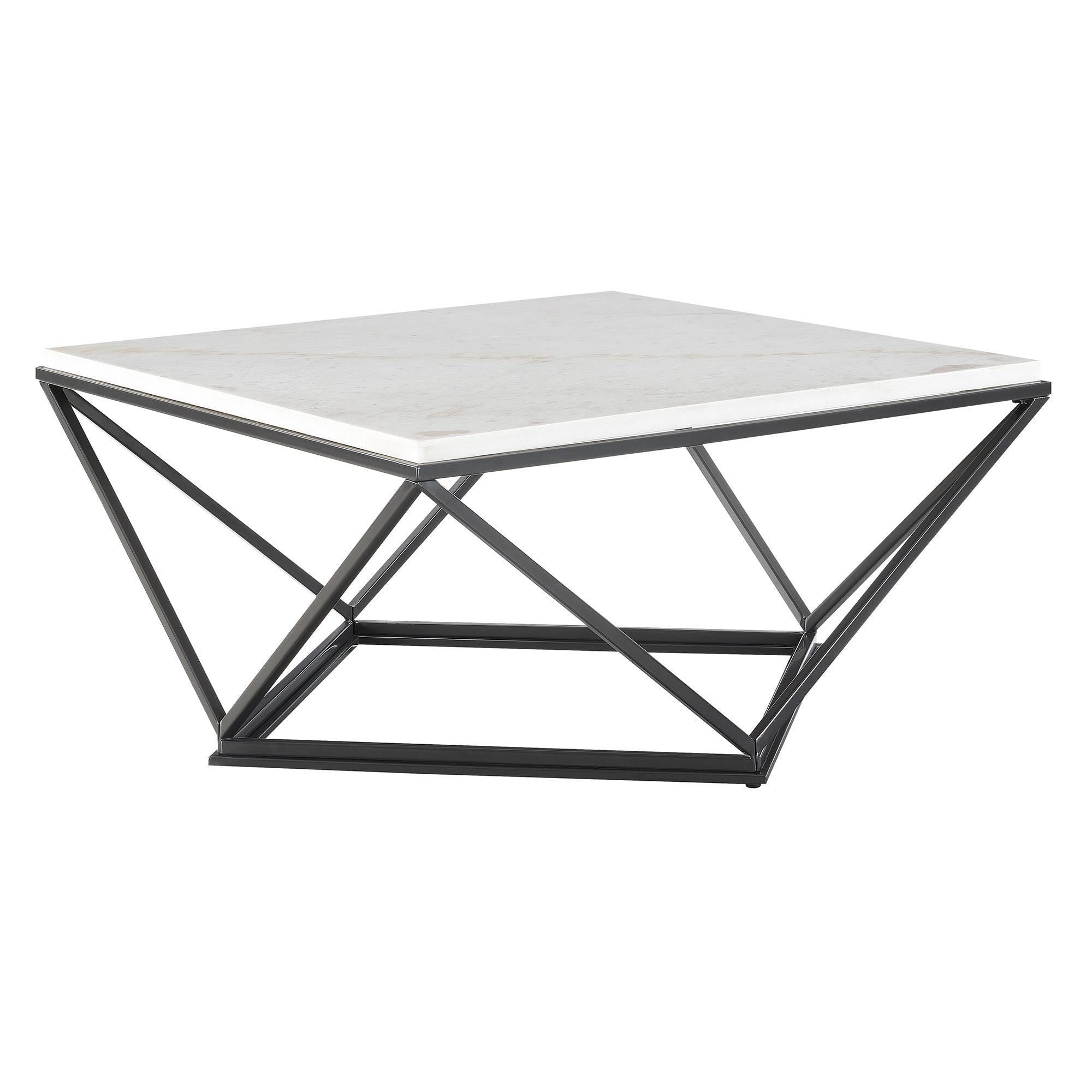 Riko Square Coffee Table - White Marble Table Top - Square Design - Powder Coated Metal Legs - Intricate Base - Contemporary Design - Sleek, Clean Lines Marble Iron Bolts 36 D x 36 W x 18 H, 70lbs. 1 Year Limited Manufacturer Warranty