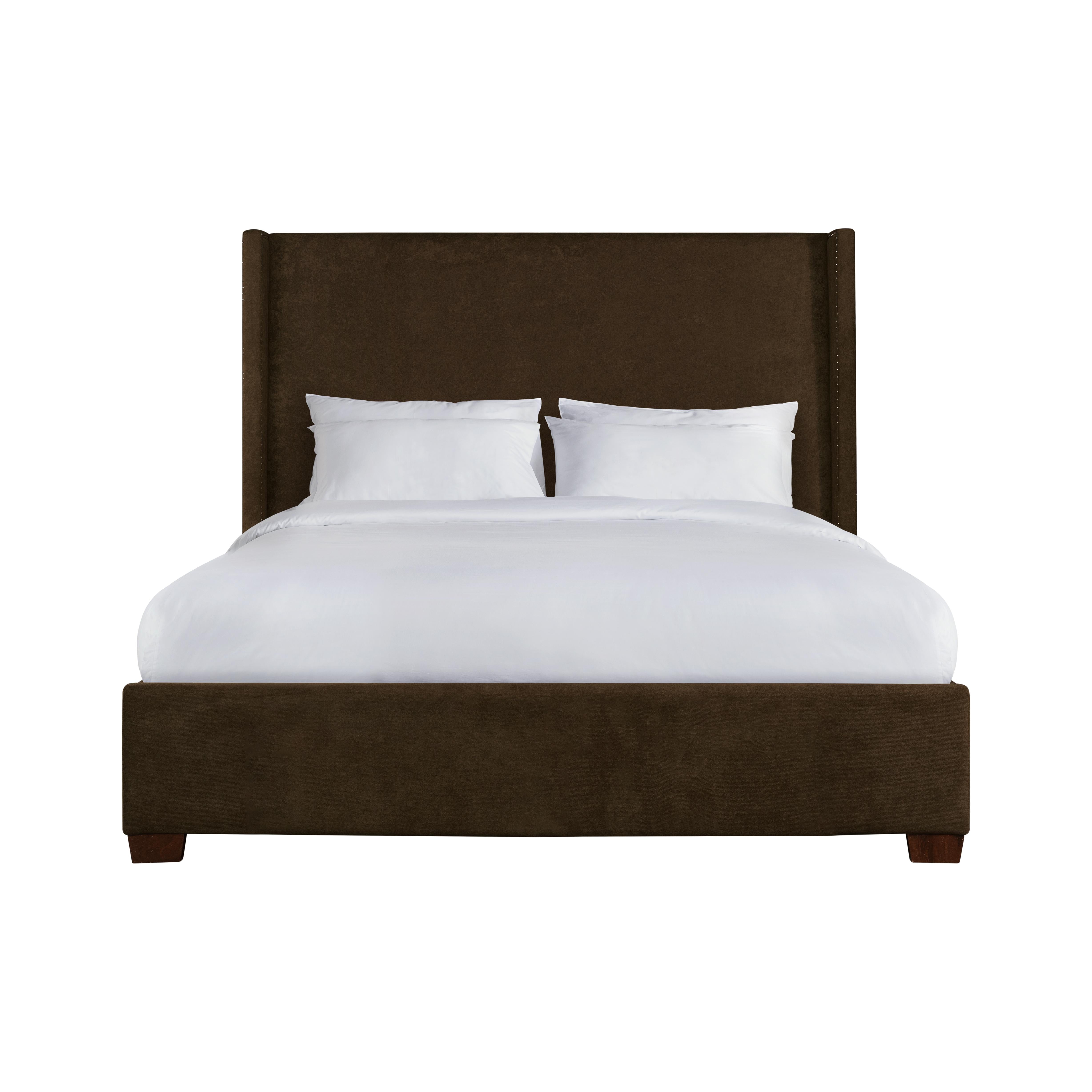 The Magnolia Upholstered Platform Bed is the bed you have been searching for. Upon first glance the prominent 68" headboard will grab your attention. The headboard is nicely detailed with chrome, nail head trim on the inner and outer wings for a touch of glam. Microfiber fabric wraps this entire bed frame and is effortless to clean! Also, this bed does not require a box spring. So, toss on your mattress and get ready for comfort. - Upholstered Platform Bed - Chrome Nail Head Trim - Dark Espresso Feet - Low Profile Footboard - Box Spring Not Required - Multiple Color Options - Transitional Design Pine MDF Plywood 94 D x 66 W x 68 H, 147lbs. 1 Year Limited Manufacturer Warranty