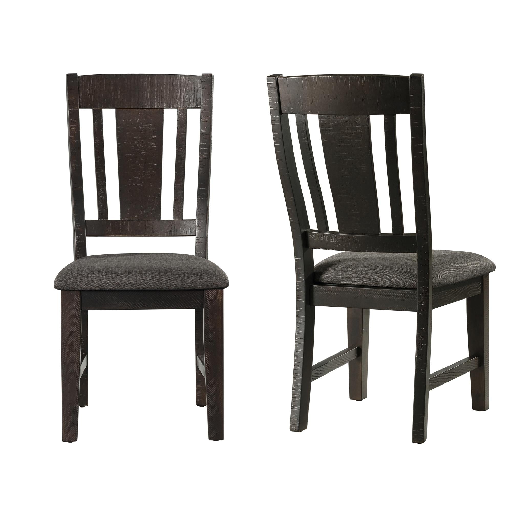 The Cash Counter Height Side Chair Set will go great with your Cash Counter Height Dining Table! This duo features an upholstered seat that is covered in a transitional gray fabric. The foam cushion seat ensures you will be comfortable for even the longest dinners. The dark gray finish pairs beautifully with the gray upholstered seats. Distressed markings are featured throughout, giving you the perfect rustic farmhouse look you crave. - Includes Two Chairs - Counter Height - Upholstered Seats - Gray Fabric - Foam Cushion Seat - Rustic Gray Finish - Distressed Markings Throughout Acacia Solid Wood MDF w. Acacia Veneer Acacia Veneer Foam Cushion Seat 22 D x 19 W x 42 H, 42lbs. 1 Year Limited Manufacturer Warranty