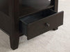 Add luxury to your decor with this visually stunning dining ensemble. Wooden frames are finished in dark espresso while the chairs feature contrasting bright, ivory fabric. For convenience, there's a lazy susan on the round table top and an open bottom shelf and large drawer below for extra storage. The chairs complement perfectly, with slightly curved round backs and padded seats upholstered in 100% polyester.