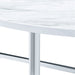 The Cyrus 3PC Occasional Table Set is a must have piece for your living area. Glam begins here, with one coffee table and two end tables in this set. The tables showcase sleek chrome metal legs and a faux marble top. The round shape of the table top and the cross base provide quality stability of this piece. Add a mirrored lamp to the end tables, so the beauty of this set and shine through. Also, the chrome legs will shine against any flooring color and provide that kiss of glam in your space. Turn the lights on and let this glam set shine! Features: • Set Includes Coffee Table & 2 End Tables • Sleek, Metal Legs for Modern Design • High-Quality Faux Marble Tabletops Offer Easy Maintenance • 'X'-Shaped Stretchers Reinforce Stability • Neutral Finish Extends Versatility • Round Shape Weight: 51.0 lbs.
