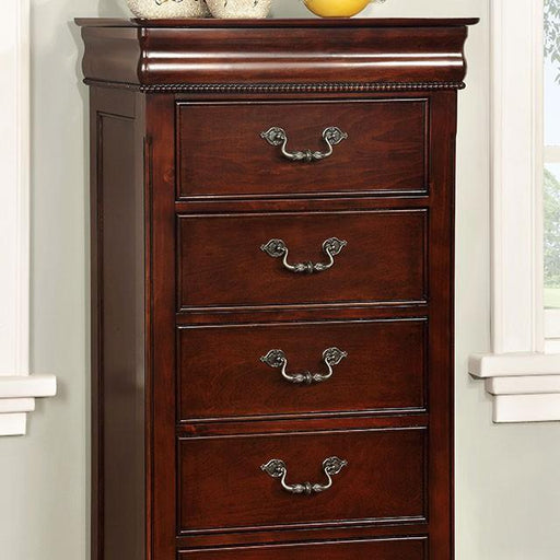 Lavish design crafted with a tall, padded headboard with intricate tufting. Nailheads trim the edges of the leatherette headboard, while case goods...