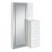 Modern style meets practicality with the Vancouver Floor Mirror with Storage. LED lighting framing the perimeter of the durable tempered glass adds stylistic flair, easily making this mirror a statement piece in your home. The mirror doubles in function as a sliding door, opening to reveal multiple shelves which perfectly complement the adjacent storage drawers and open shelving. Finished in a crisp and versatile white, the Vancouver Floor Mirror with Storage is a functional and sleek addition to your home's décor. Features: • Sliding, Tempered Mirror Door Conceals Additional Storage • Integrated Drawers Streamline Organization • Drawers with Cam Locks & Ball Bearing Glides • Dimming LED Light Adds Modern Flair • Large Portrait Mirror for Full-Body View • Due To Lighting, Product Color May Slightly Vary from Images Dimensions: Depth: 18.0" x Width: 39.0" x Height: 68.0" Weight: 124.0 lbs.